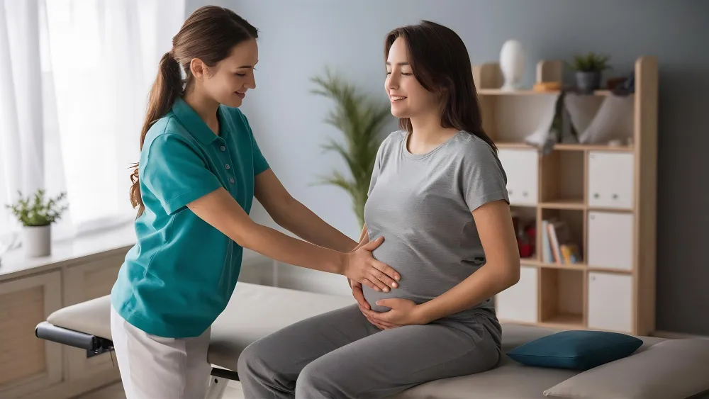 Breathing Techniques: Proper breathing patterns not only help during labor but also support your core function throughout pregnancy. Physiotherapists teach diaphragmatic breathing that enhances oxygen flow to you and your baby while reducing stress and tension.